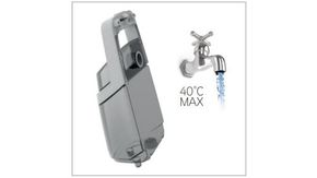 Rinse the dirty water tank and lid with warm water (max 40°C) to remove dirt/debris.